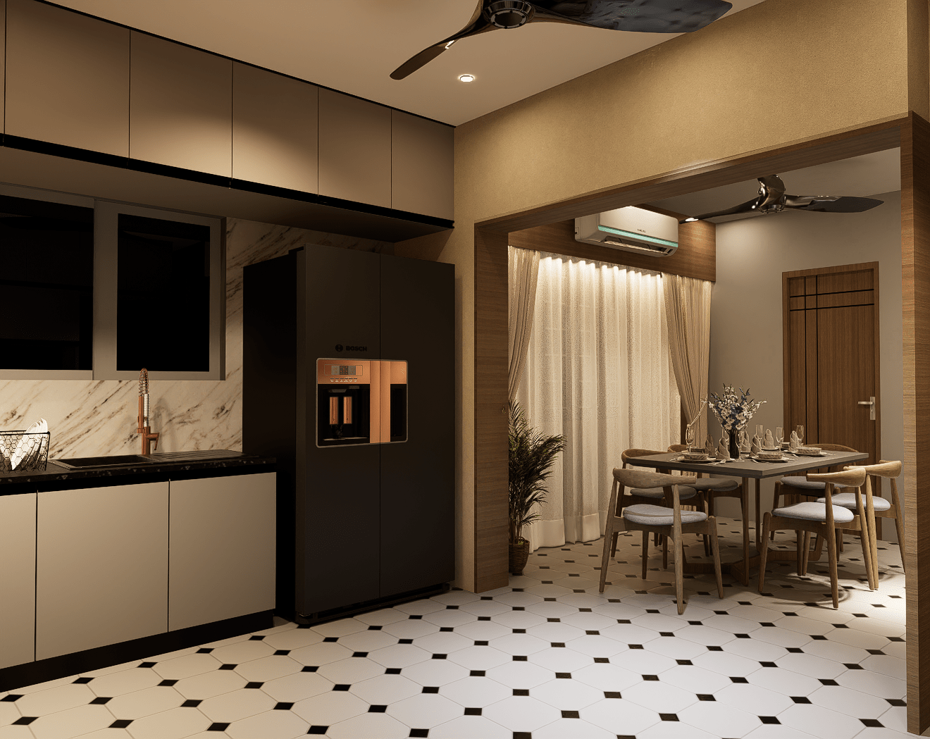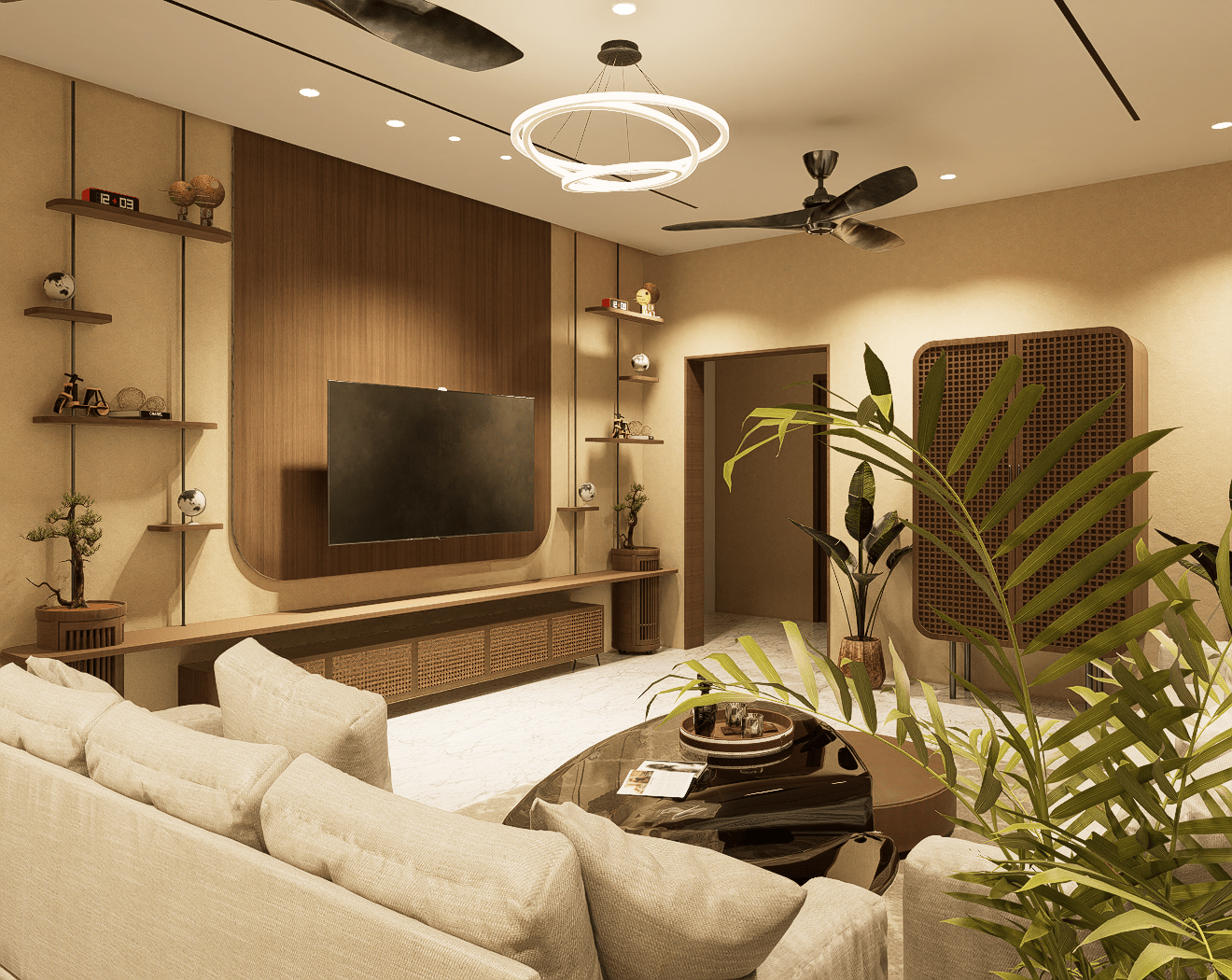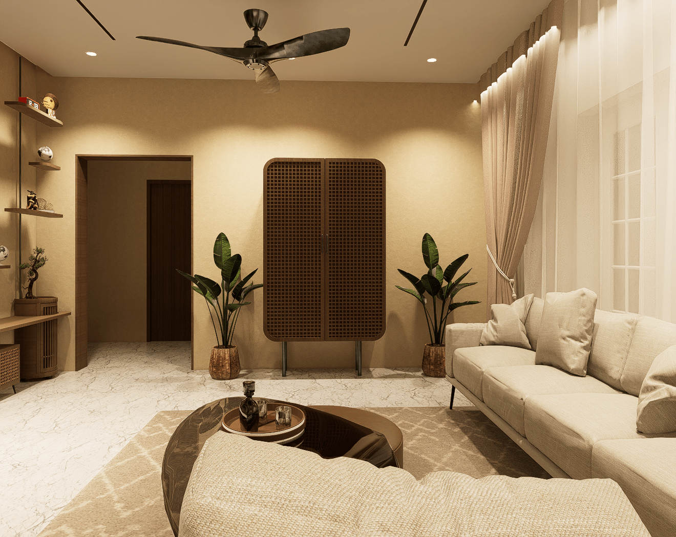 The Warm Wood Terra is a proposed design house, purposefully crafted home where warm neutrals meet natural textures, creating a serene and inviting atmosphere.It’s a 3BHK home where modern contemporary design meets timeless comfort. Rooted in simplicity and clean lines, the interiors feature a soothing cream-beige palette paired with natural materials like rattan, and accented by rich wooden tones that add depth and warmth.