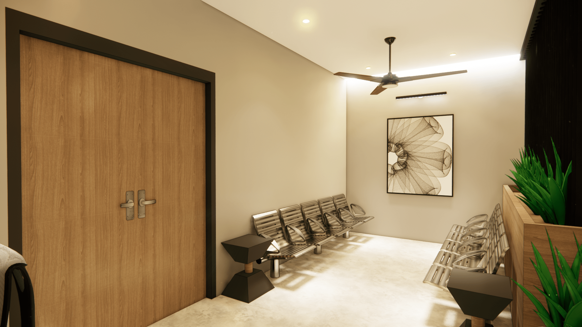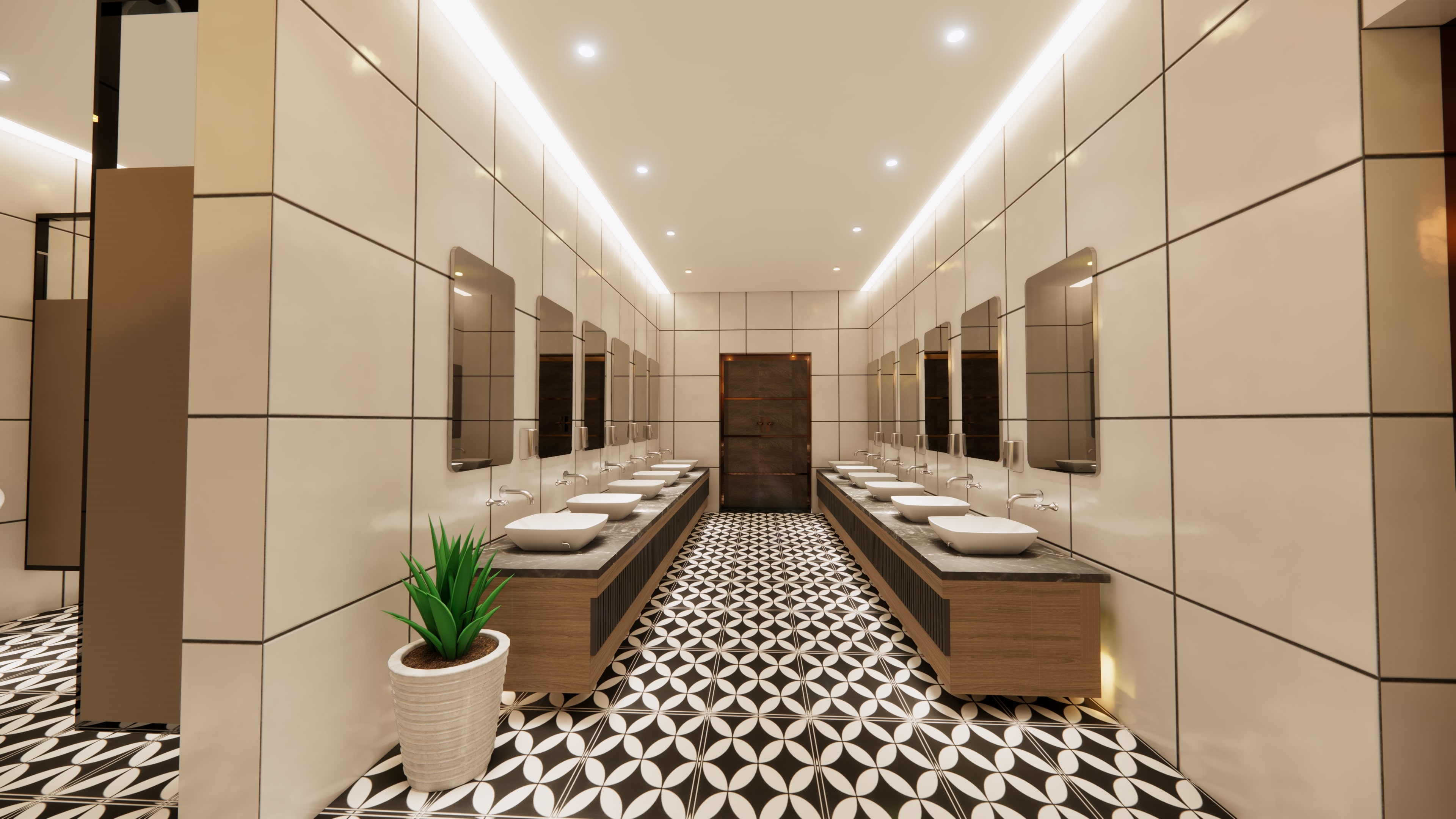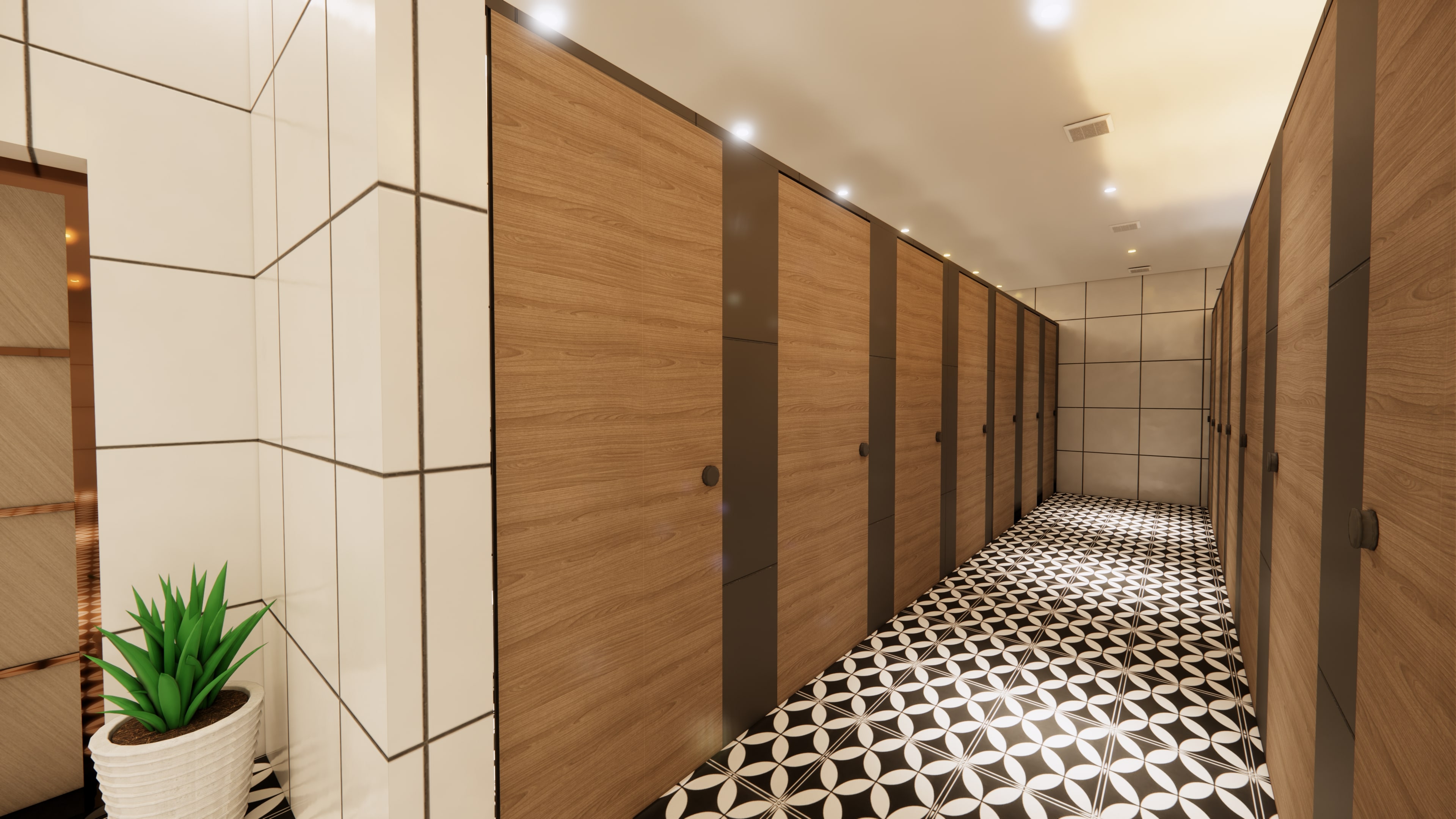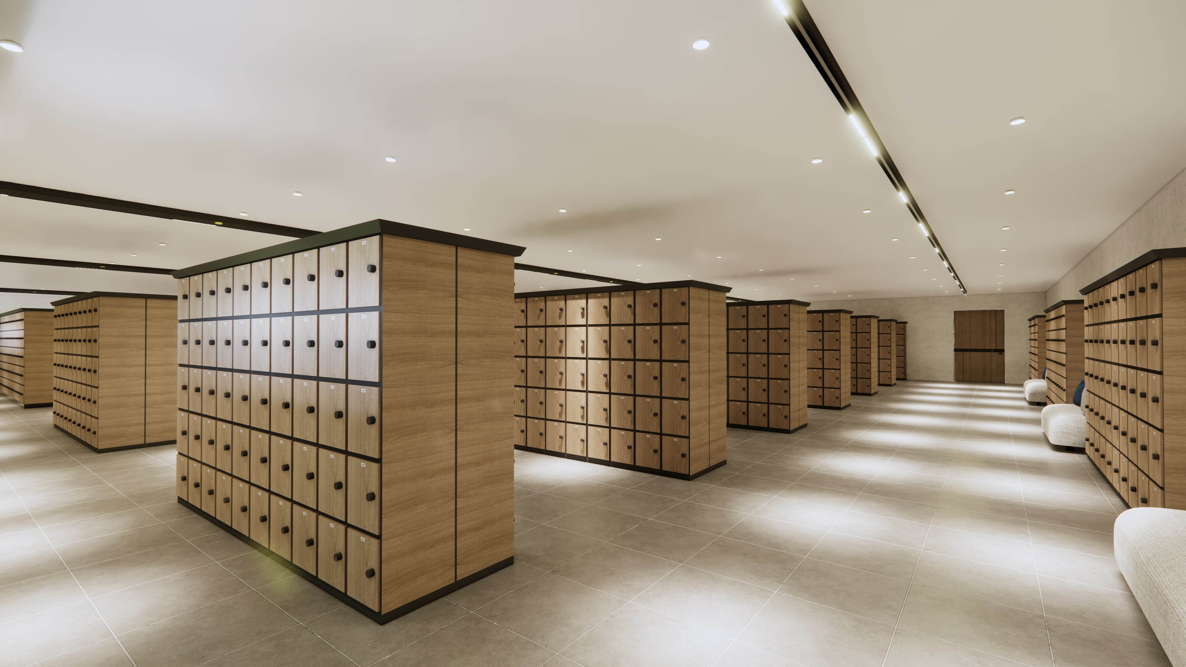 security, and locker areas, complemented by profile ceiling lighting.