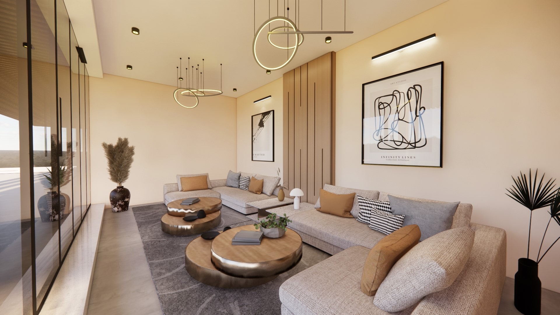 beige coffee table, creating a minimal yet refined aesthetic.