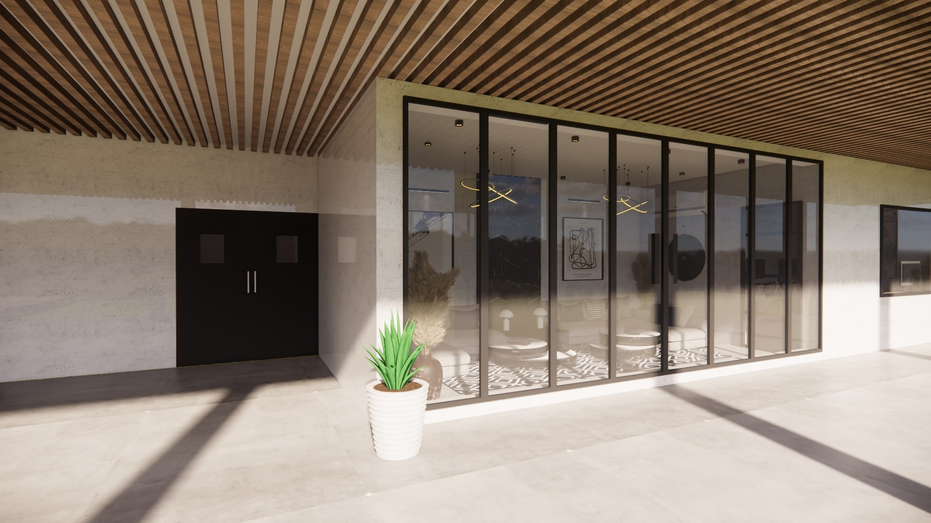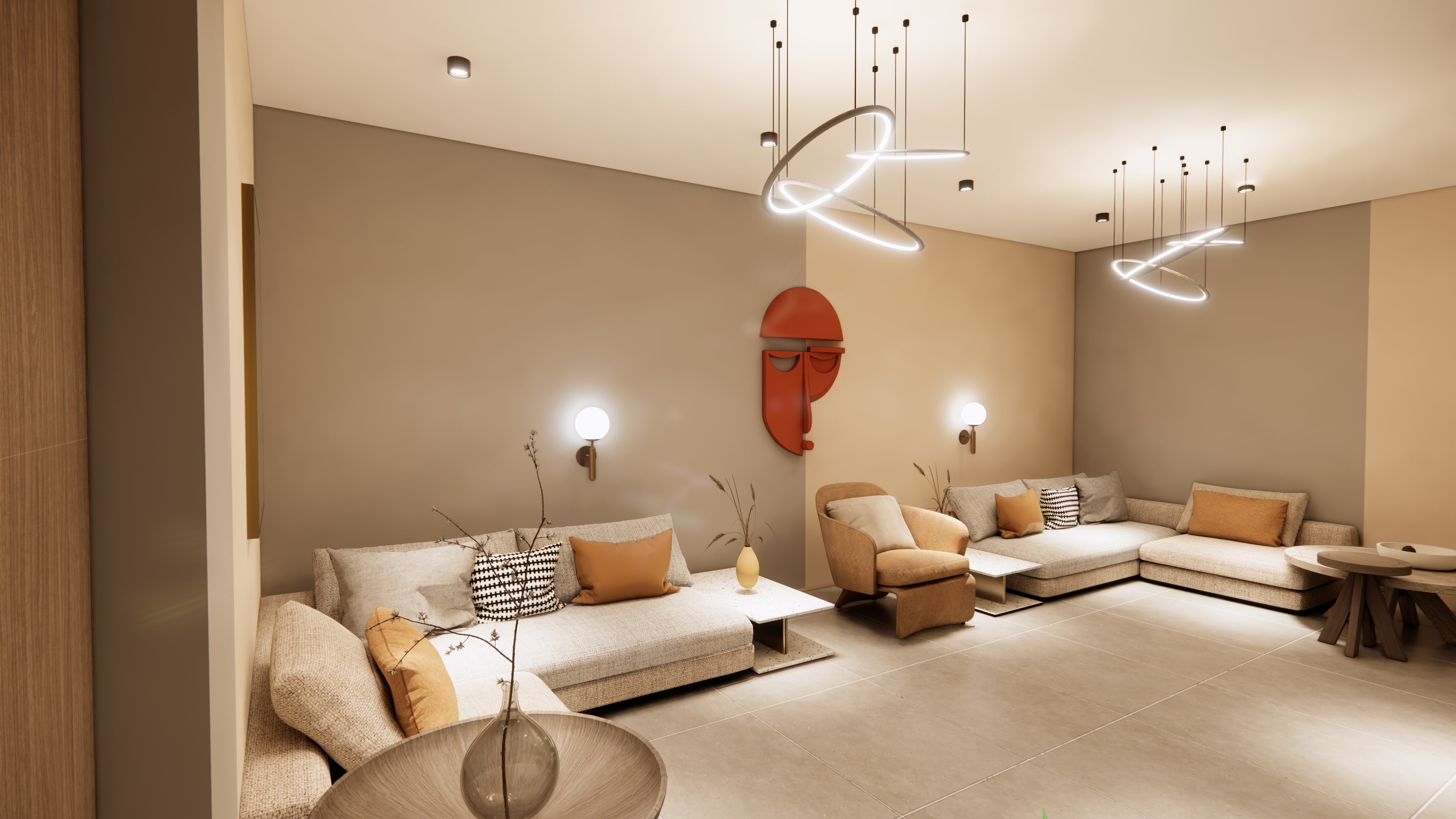 flows into the lobby area, designed as a welcoming yet formal space that