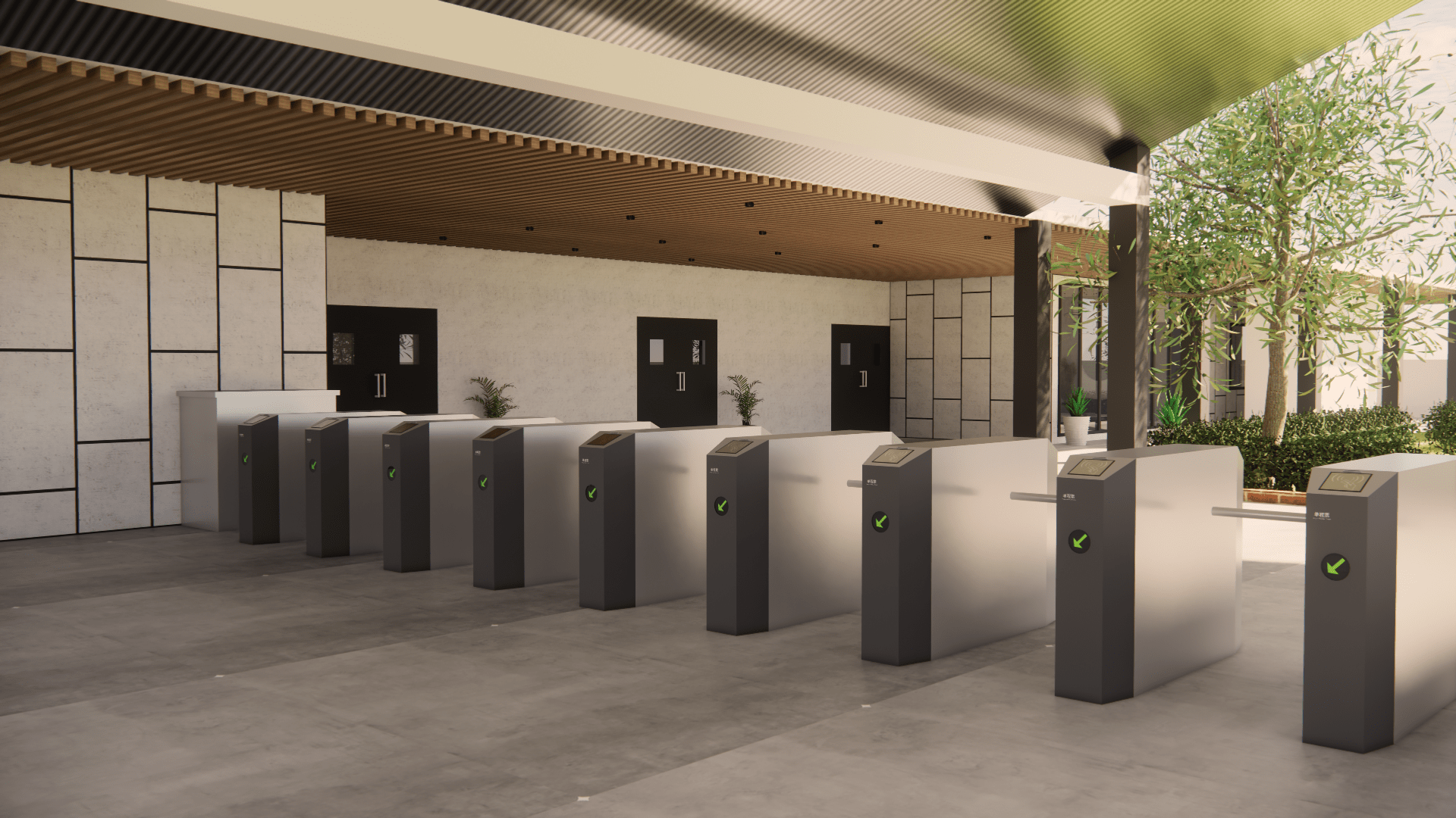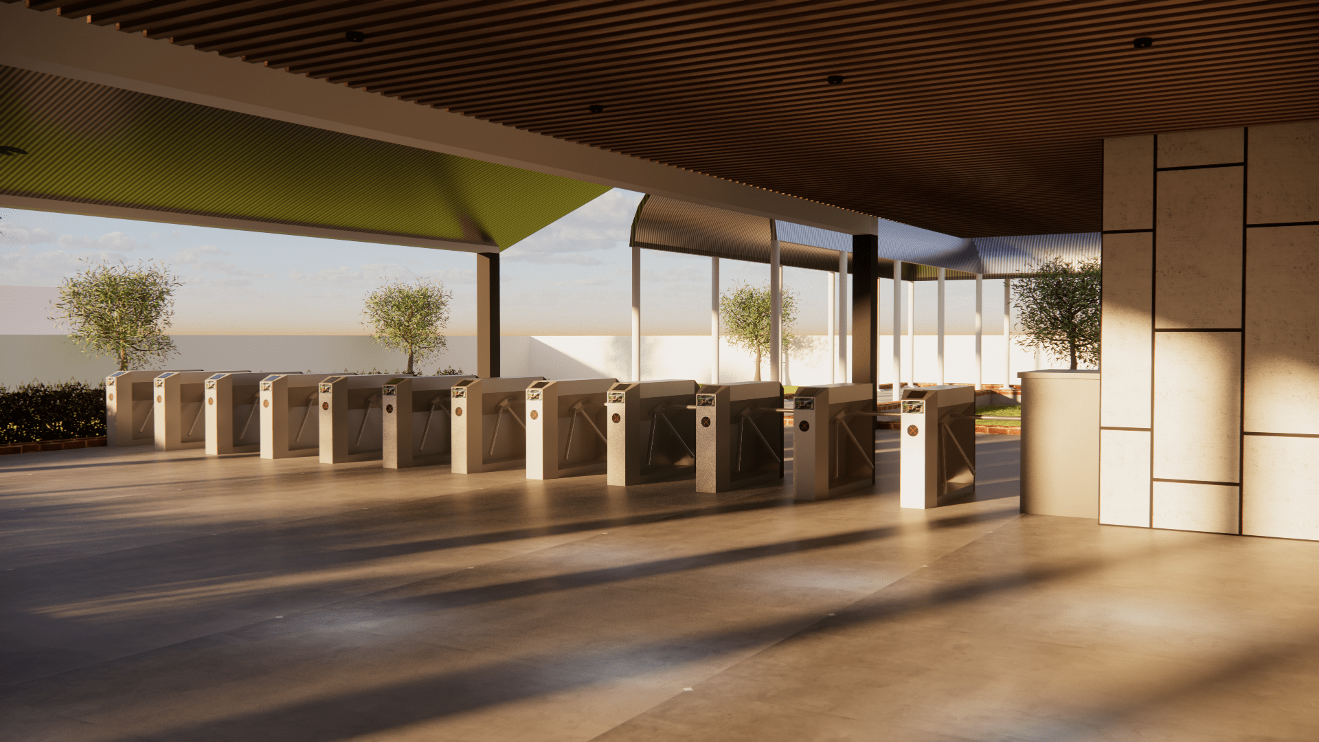 The design begins at the secure speed gates, which ensure safety and